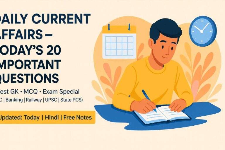 Current AffairsGK in Hindi Daily Current Affairs: आज के 20 महत्वपूर्ण प्रश्न (Latest Current Affairs Questions)