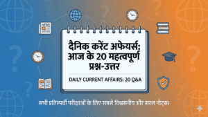 Daily Current Affairs :आज के 20 महत्वपूर्ण Current Affairs Questions (Competitive Exams के लिए अत्यंत महत्वपूर्ण) Daily Current Affairs : प्रतियोगी परीक्षाओं—SSC, Banking, Railways, State PCS, Defence—में Current Affairs सबसे स्कोरिंग सेक्शन माना जाता है। यहाँ हम आपके लिए आज के 20 सबसे महत्वपूर्ण Current Affairs MCQs लेकर आए हैं, उनके उत्तर और संक्षिप्त व्याख्या…